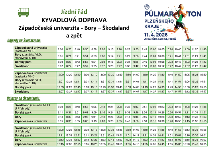 Chystáte se na Půlmaraton Plzeňského kraje? Přinášíme Vám přehled možností, jak se pohodlně dopravit do areálu Škodaland v den závodu 11. 4. 2026.